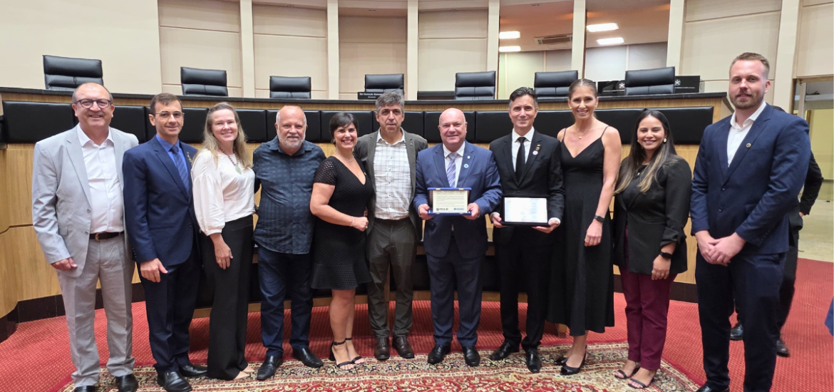 O presidente Ewerson Lombardi representou a Associação, acompanhado pela diretoria da entidade. A honraria foi entregue pelo deputado estadual Napoleão Bernardes.