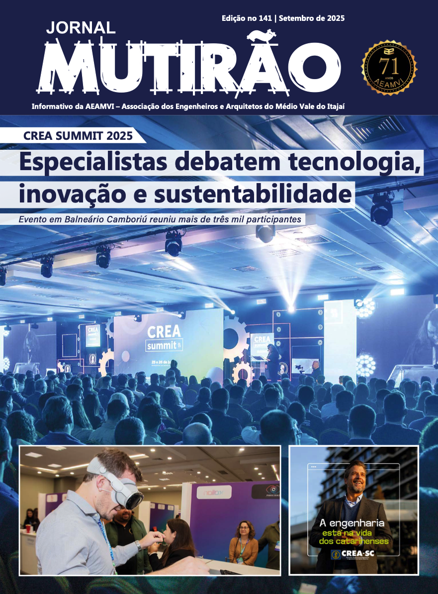 A AEAMVI marcou presença na no CREA Summit 2025 e no 15º CEP – Congresso Estadual de Profissionais, realizados no mês de julho, em Balneário Camboriú, A edição 141 do MUTIRÃO apresenta um resumo de tudo que rolou nos dois eventos e ainda na reunião do Colégio de Entidades
